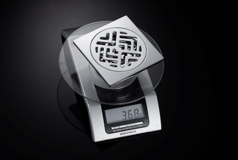 D011不鏽鋼電鍍地漏優勢:麵板靈感源自中國傳統窗花剪紙的元素,主體、麵板使用不鏽鋼拋光電鍍工藝、防臭芯使用銅材。地漏防臭芯使用全銅T型防臭芯,排水速度快,防臭效果好。