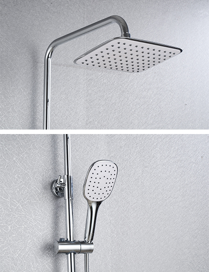 ·方形豪華頂噴,配加方形軟膠出水手持花灑,淋浴暢爽,品質出眾。