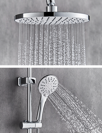 • 9寸大頂噴,五功能花灑,含噴槍出水和緩停出水。