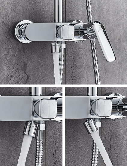 • 方形一鍵三功能,頂噴水、花灑水、下出水切換自如。